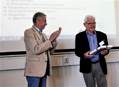 Fredag 8 juni höll vi till på RISE Bioeconomy. Där blev det årsmötesförhandlingar och avtackning av Jan-Erik Levlin efter 10 år som ordförande. Han avtackas av nyvalde ordföranden Hans Norrström. Per Jerkeman som lämnar styrelsen efter minst lika många år avtackas av vice ordförande Kari Greve.