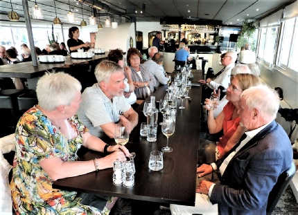 Mingel inför kvällens middag på skeppet Märlardrottningen. Per Jerkeman presenterar kvällens meny och berättar om fartygets historia.