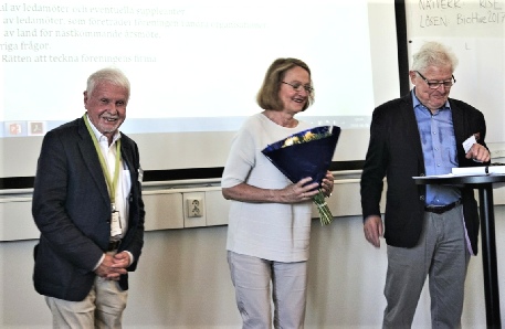 Fredag 8 juni höll vi till på RISE Bioeconomy. Där blev det årsmötesförhandlingar och avtackning av Jan-Erik Levlin efter 10 år som ordförande. Han avtackas av nyvalde ordföranden Hans Norrström. Per Jerkeman som lämnar styrelsen efter minst lika många år avtackas av vice ordförande Kari Greve.